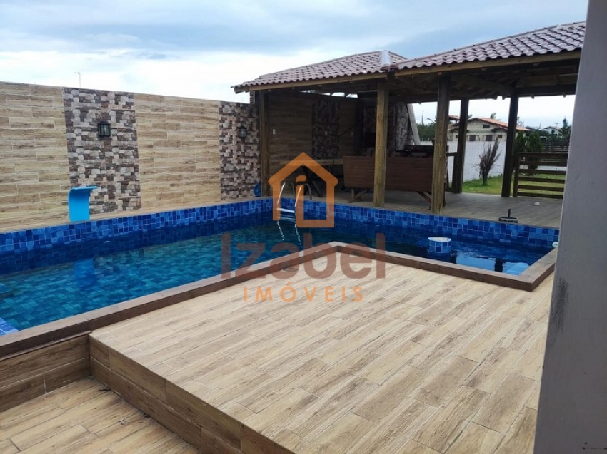 Imóvel localizado no município de Balneário Gaivota SC, bairro Brilhamares, sob dois terrenos de 12x25 cada um, o imóvel é constituído de Sala de Tv, copa e cozinha conjugados, três dormitórios, sendo um suíte, área para abrigo de três carros, churrasqueira, dispensa, lavanderia, piscina com área gourmet e churrasqueira. Imóvel todo murado com portão eletrônico.
